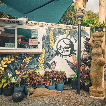 A gorgeous garden close to the ocean offers my favorite food on Maui. South Maui Gardens includes over ten restaurants or trucks to choose from. Acai bowls, Thai Food, gourmet pastries and pizza. It's fun to try new things and wander around the huge garden. There are amazing statues and a giant tortoise. We love coffee from Da Green! My favorite is acai bowls from Sweet Hula and Hawaiian at Sparky's. Visit them on Instagram to stay up-to-date.
